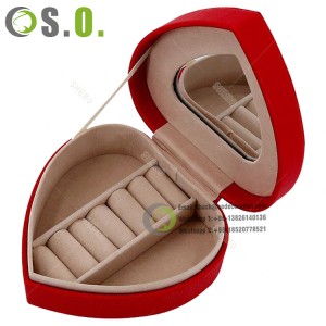 PU Leather Wedding Heart Jewelry Case For Earrings Rings Women Mirrored Portable Jewelry Storage Box Holder |